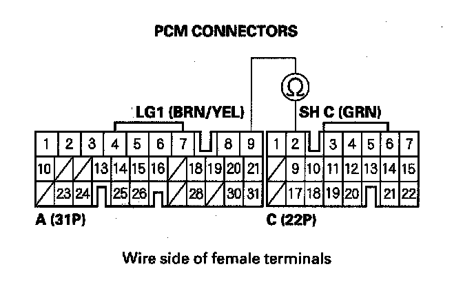 10. Disconnect PCM connectors A (31P) and C (22P).