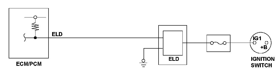 The electrical load detector (ELD) is built into the under-hood fuse/relay box. It monitors the current fed to the ignition switch and sends a signal to the engine control module (ECM)/powertrain control module (PCM). If the ELD output voltage is extremely high, a malfunction is detected and a DTC is stored.