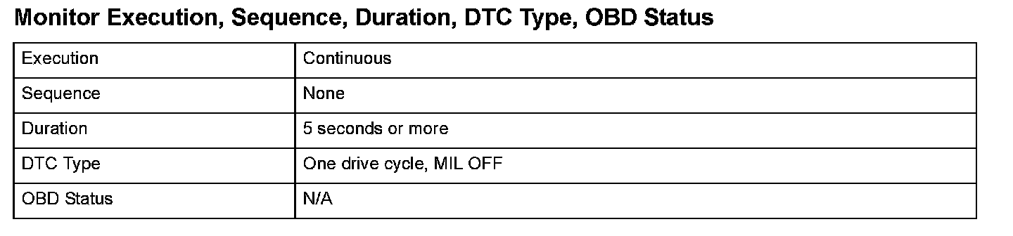 Monitor Execution, Sequence, Duration, DTC Type, OBD Status