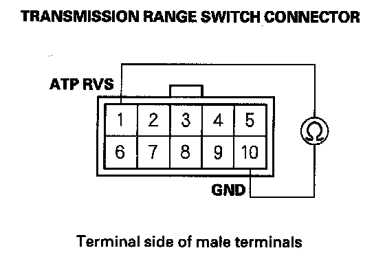 11. Check for continuity between the No. 1 and No. 10 terminals at the transmission range switch. The shift position must be R.