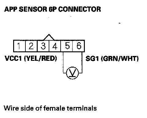 6. Measure voltage between APP sensor 6P connector terminals No. 5 and No. 6.