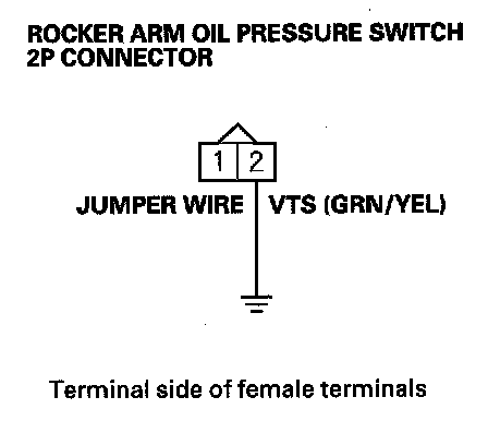 11. Connect rocker arm oil control solenoid 2P connector terminal No. 2 to body ground with a jumper wire.