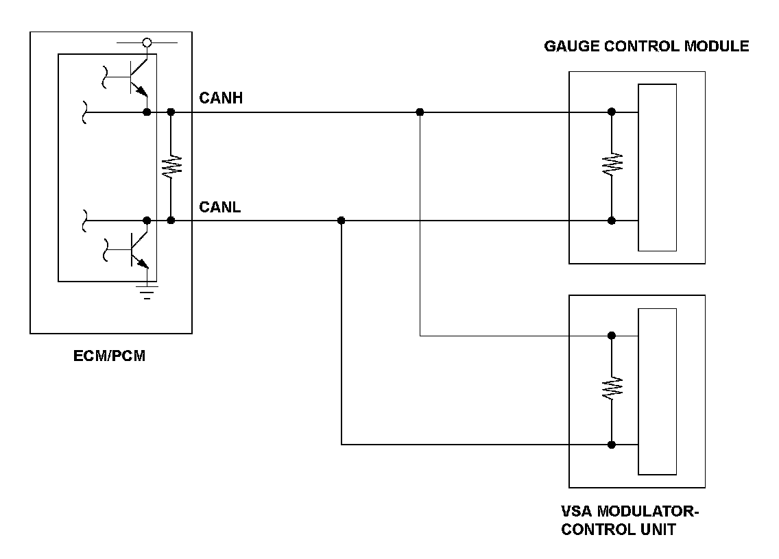 The controller area network (CAN) transmits/receives pulsing signals to/from the control modules simultaneously by using two signal lines (CANH and CANL).