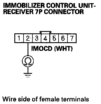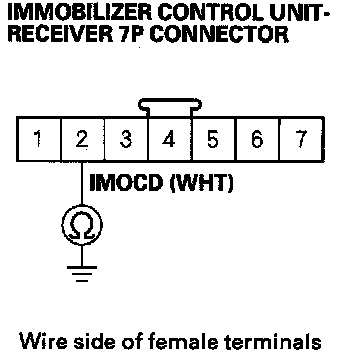 32. Check for continuity between the immobilizer control unit-receiver 7P connector No. 2 (IMOCD) terminal and body ground.
