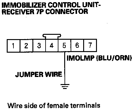 16. Using a jumper wire, connect the immobilizer control unit-receiver No. 5 (IMOLMP) terminal to ground.