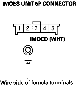 39. Check for continuity between the IMOES unit 5P connector No. 2 (IMOCD) terminal and body ground.