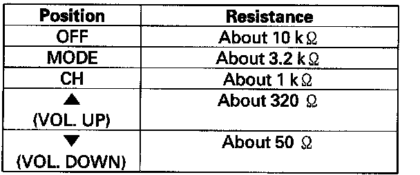 5. Measure the resistance between the No. 3 and No. 4 terminals in each switch position according to the table.
