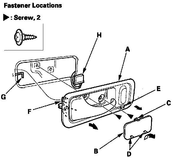 5. Disconnect the power door lock switch connector (H).