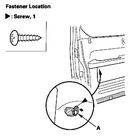 4. From under the armrest, using the appropriate tool from the KTC trim tool set, pry out the lid (A), and remove the screw.