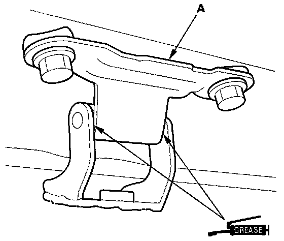 9. Apply multipurpose grease to the pivot portion of the hatch hinges (A) as indicated by the arrows.