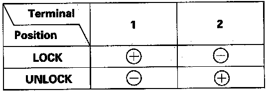 3. Check actuator operation by connecting power and ground according to the table. To prevent damage to the actuator, apply battery voltage only momentarily.