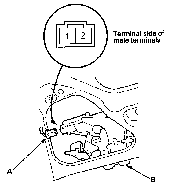 2. Disconnect the 2P connector (A) from the actuator (B).