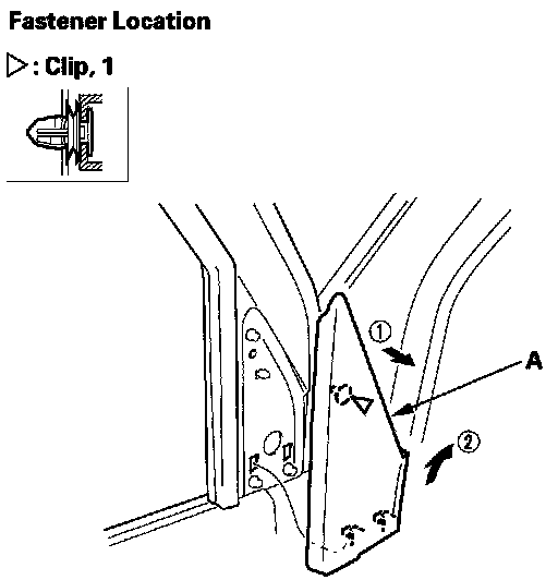 2. Carefully pry out the mirror mount cover (A) by hand in the sequence shown.