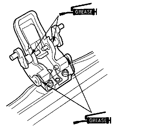 - Apply multipurpose grease to the handle pivot portions and latch arm moving portion as indicated by the arrows.