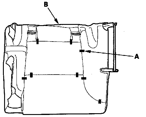 12. Pull back the edge of the seat cushion cover all the way around, and release the clips (A), then remove the seat cushion cover (B).
