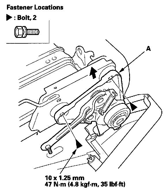 10. Remove the bolts, then remove the recline adjuster (A).