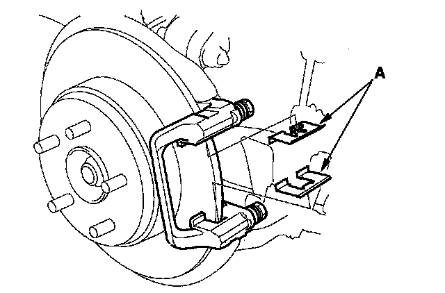 6. Remove the pad retainers (A).