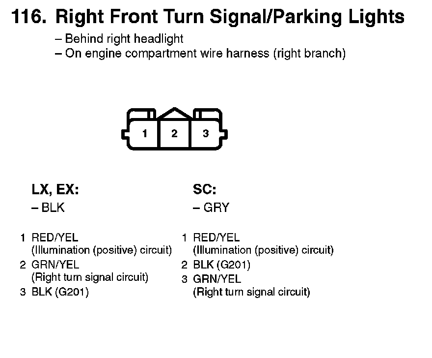 116. Right Front Turn Signal/Parking Lights: