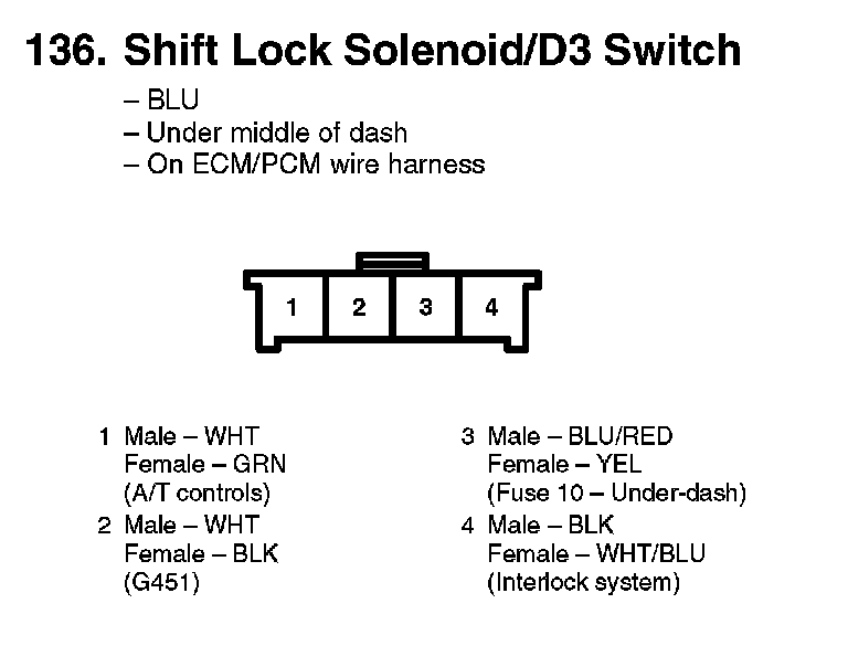 136. Shift Lock Solenoid/D3 Switch:
