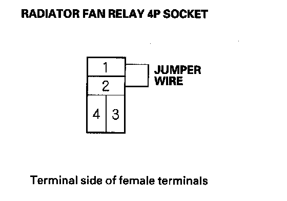 5. Connect the radiator fan relay 4P socket terminals No. 1 and No. 2 with a jumper wire.