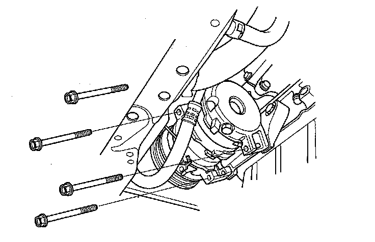 21. Remove the power steering (P/S) pump without disconnecting the P/S hoses from the pump.