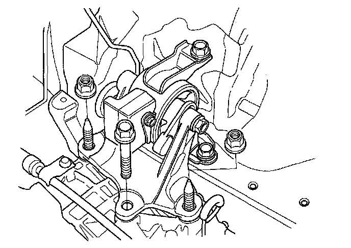 56. M/T model: Remove the transmission mount bracket support bolt and nuts.