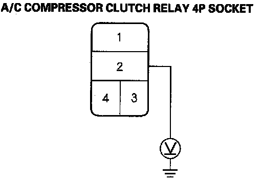 8. Measure the voltage between the No. 2 terminal of the A/C compressor clutch relay 4P socket and body ground.