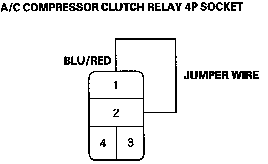 9. Connect the No. 1 and No. 2 terminals of the A/C compressor clutch relay 4P socket with a jumper wire.