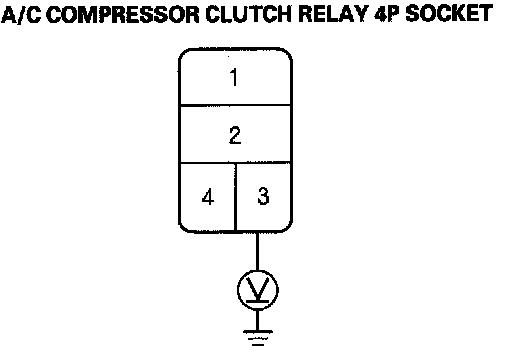 12. Measure the voltage between the No. 3 terminal of the A/C compressor clutch relay 4P socket and body ground.
