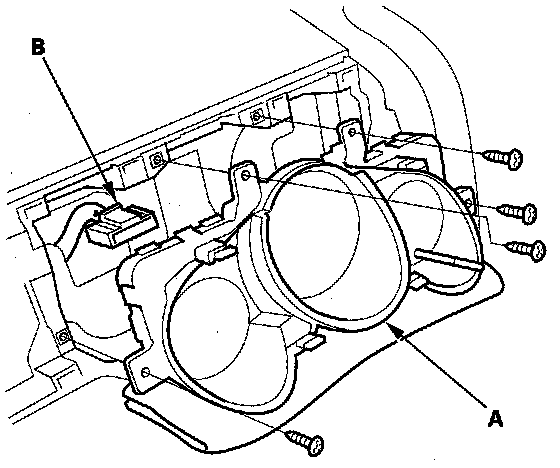 4. Disconnect the connector (B), and remove the gauge control module.