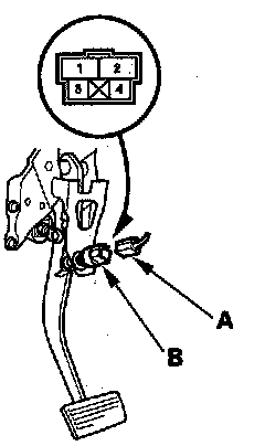 2. Disconnect the 4P connector (A) from the brake pedal position switch (B).