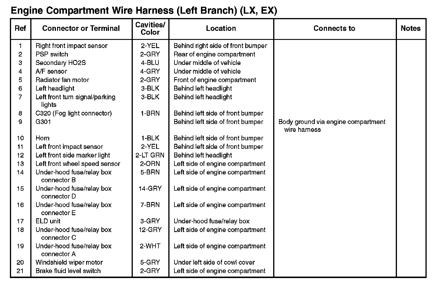 Engine Compartment Wire Harness (Left Branch) (LX, EX):