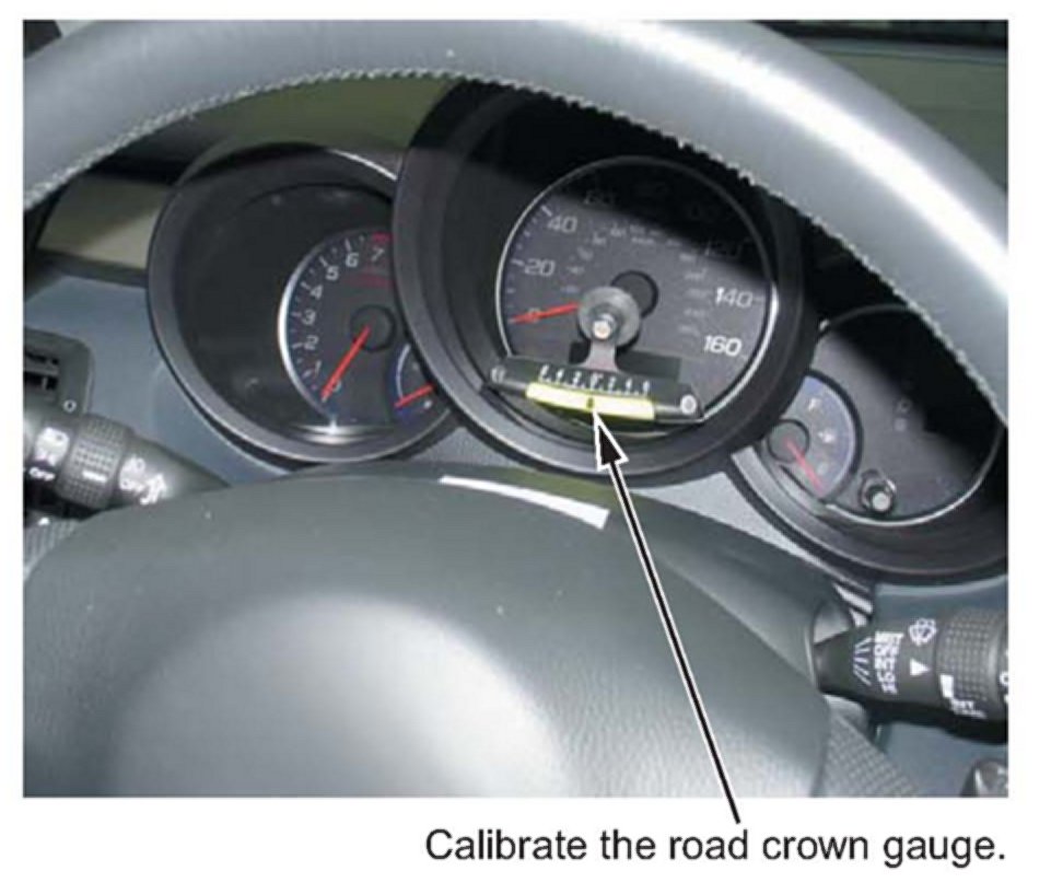 You must calibrate the gauge with the same weight in the vehicle that you will use for the test-drive. If you plan to have an assistant help you during the test-drive, calibrate the gauge while both of you are sitting in the vehicle.