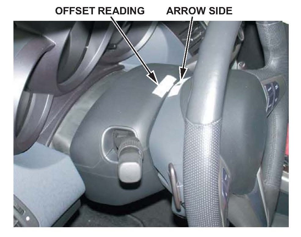 The steering wheel offset gauge is a sticker that attaches to the steering wheel and the steering column cover. Place the sticker on the steering wheel when the steering wheel is straight. When you test-drive the vehicle, you can read how many millimeters the steering wheel is off-center.