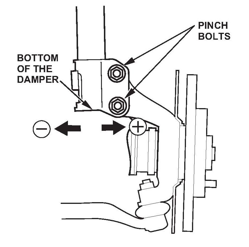 ^ Adjust the camber by moving the bottom of the damper within the range of the damper pinch bolt free play.