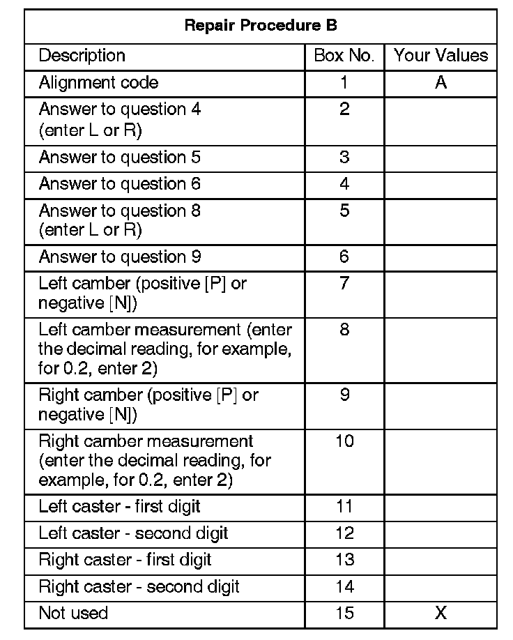 New tools were developed to help you diagnose and correct a pulling and/or steering wheel off-center issue. There is a diagnosis worksheet included to take on your test-drive and record your findings. These values are used to build the 15-digit DTC (diagnostic trouble code) that is required for your warranty claim. The last step in each repair procedure helps you create the correct code.