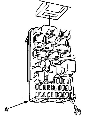 5. Remove the mounting bolt and the under-dash fuse/relay box (A).
