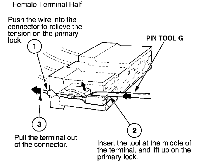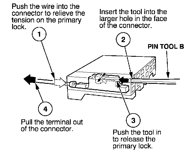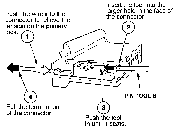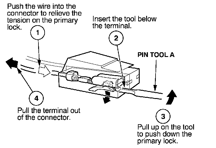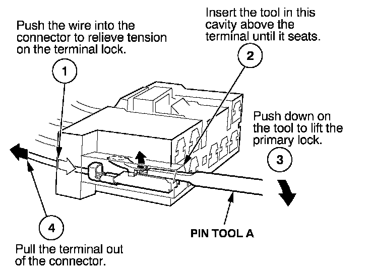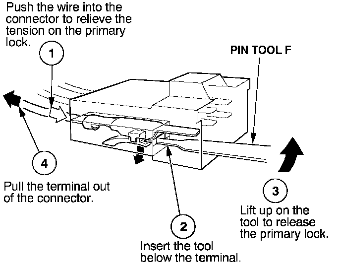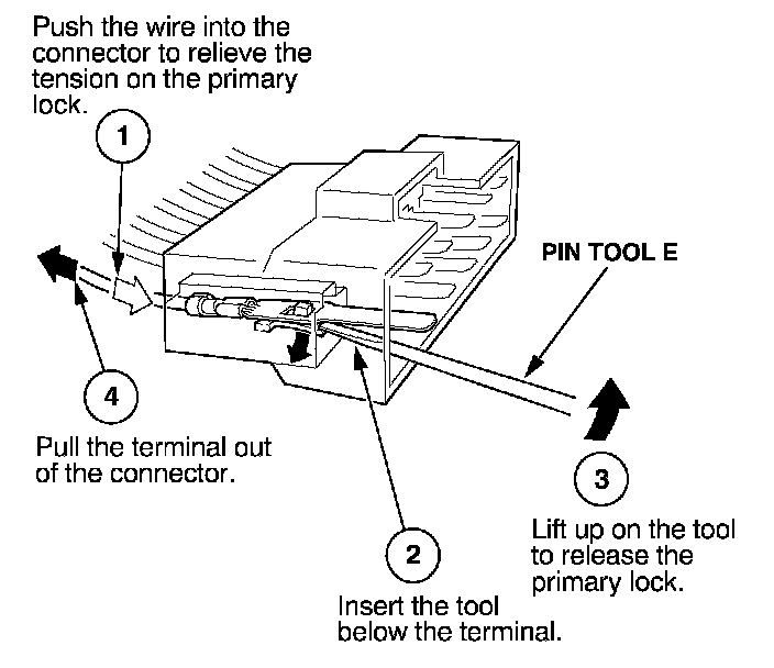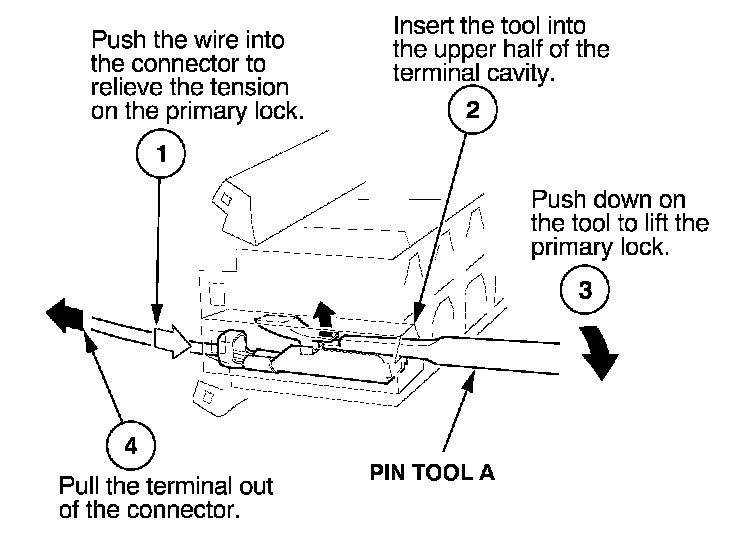 Before you begin, inspect the wire you are about to repair for damage and length. Make sure the wire will be long enough to make a terminal repair without stretching it when you reinstall the terminal in the connector. If the wire is too short, or if access to the connector is too restricted to make a terminal repair, you may need to install a pigtail terminal (a short length of wire with a factory-crimped terminal on it). Refer to HOW TO INSTALL PIGTAIL TERMINALS.