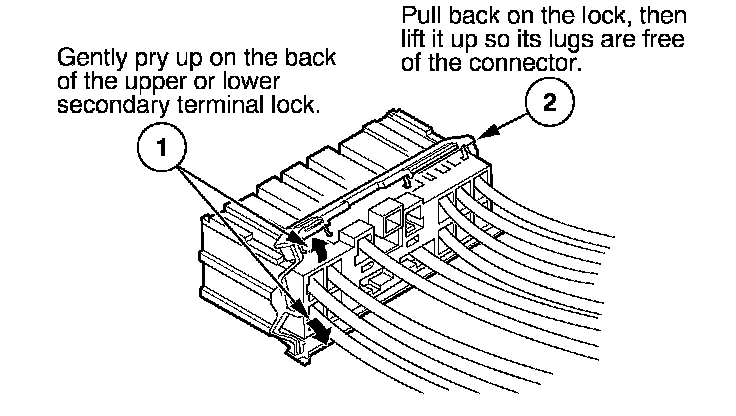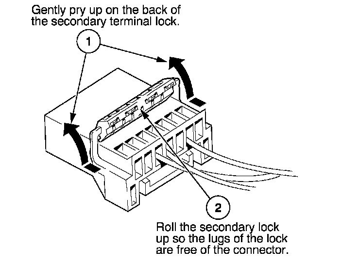 - If it has a secondary terminal lock, go to Connectors With a Secondary Lock. A secondary lock, found on most connectors on some models, is an additional locking device on the connector housing as a backup for the primary lock on the terminal.