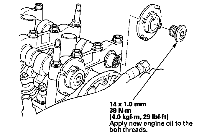 2. Hold the exhaust camshaft with an open-end wrench, then loosen the bolt.
