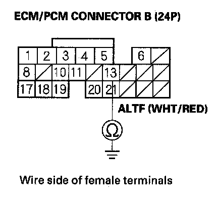 8. Check for continuity between body ground and ECM/PCM connector terminal B13.