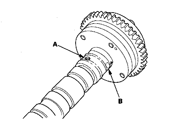 6. Seal the advance holes (A) and retard holes (B) in the No. 1 camshaft journal with tape.