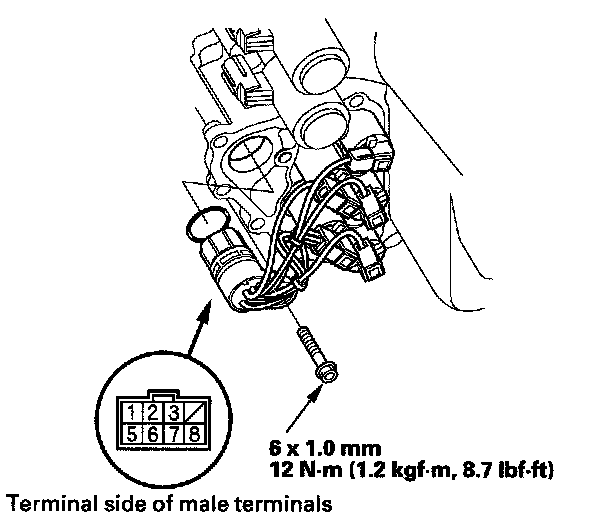 13. Connect the battery negative terminal to body ground, and connect the battery positive terminal to the shift solenoid harness connector terminal individually. A clicking sound should be heard.