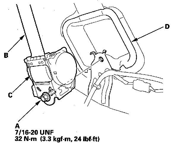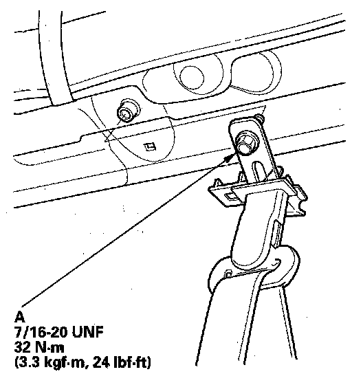 9. Install the seat belt in the reverse order of removal, and note these items: