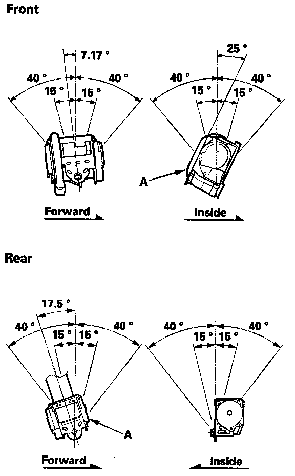 2. Make sure that the seat belt does not lock when the retractor (A) is leaned slowly up to 15 ° from the mounted position. The seat belt should lock when the retractor is leaned over 40 °. Do not attempt to disassemble the retractor.