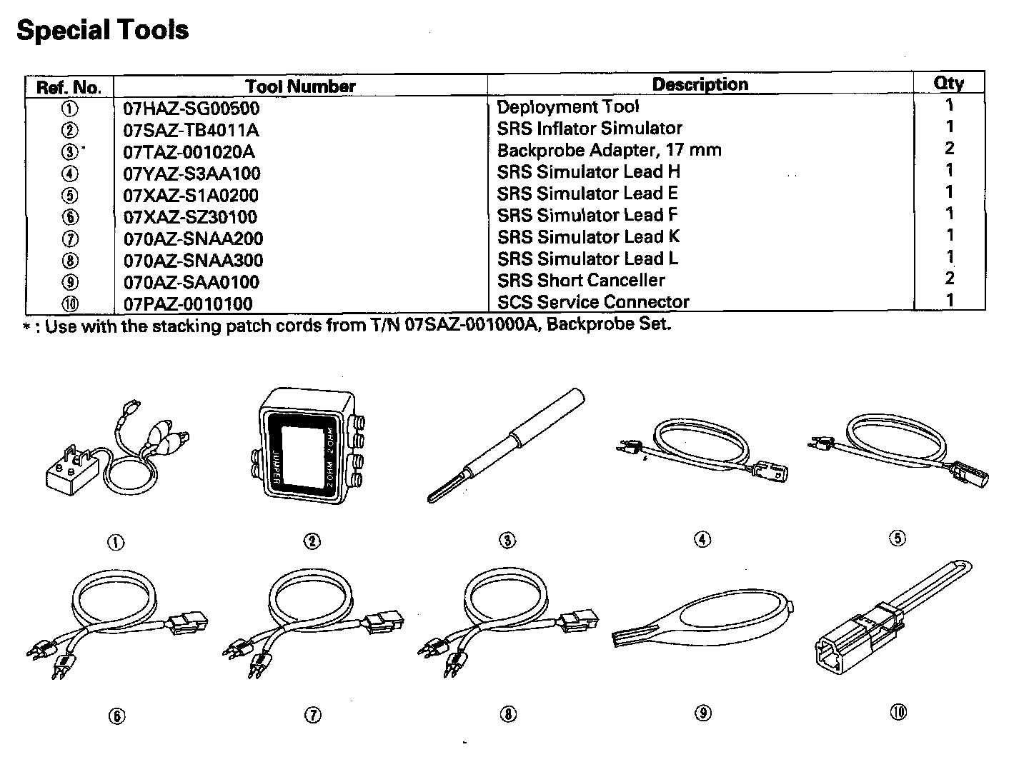 Restraints Special Tools:
