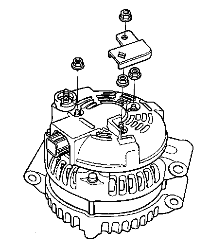 4. Remove the harness stay and the three flange nuts from the alternator.