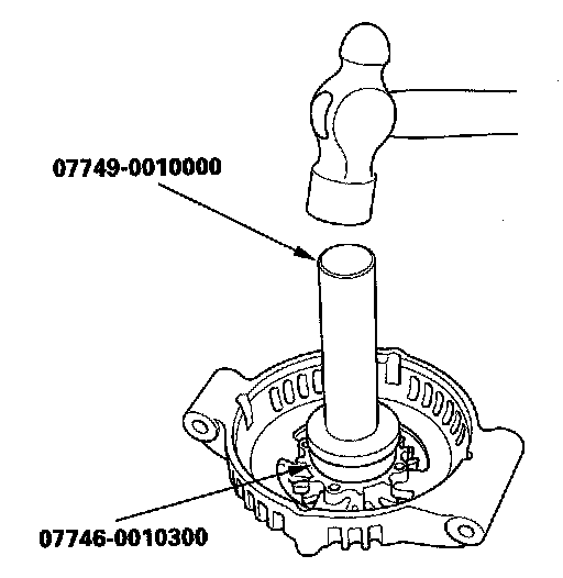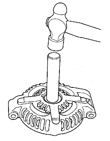 12. With a hammer and special tools, install a new front bearing in the drive-end housing.