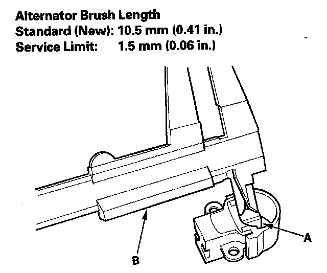 - If either brush is shorter than the service limit, replace the brush holder assembly.