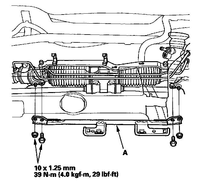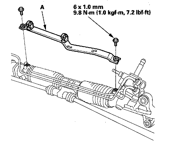 Steering Gearbox Installation1. Install the P/S line mounting bracket (A).